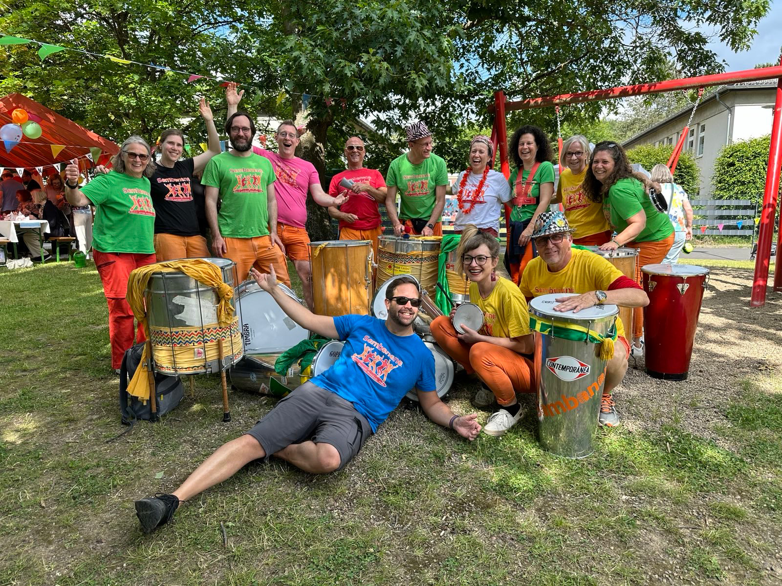 Unsere Trommler*innen kommen aus ganz unterschiedlichen Lebenswelten: Manche sind nach Marburg oder Gießen gezogen und bringen Erfahrungen aus anderen Gruppen mit. Andere wurden direkt von unserem Groove angesteckt – sei es bei einem Workshop, einem Auftritt oder einfach beim Zuhören. Und dann gibt es die, die „nur mal reinschnuppern“ wollten … und geblieben sind, weil sie dem Rhythmus einfach nicht widerstehen konnten ;-). Unsere Altersstruktur reicht aktuell von 28 bis 75 Jahren – vom Studierenden bis zur Rentnerin, vom Neuling bis zum alten Hasen. Was uns verbindet? Die Leidenschaft für Percussion, das gemeinsame Musizieren und die Freude daran, mit unseren Beats Menschen zu bewegen.